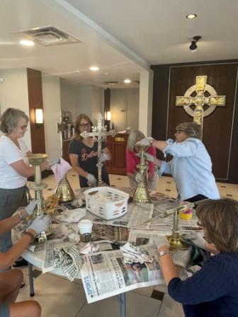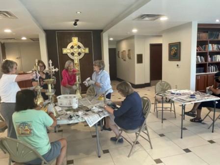 Among the many important contributions the Guild makes to parish life, polishing the brass is one of the most visible! Below are photos of members enjoying the fellowship of this shared work.